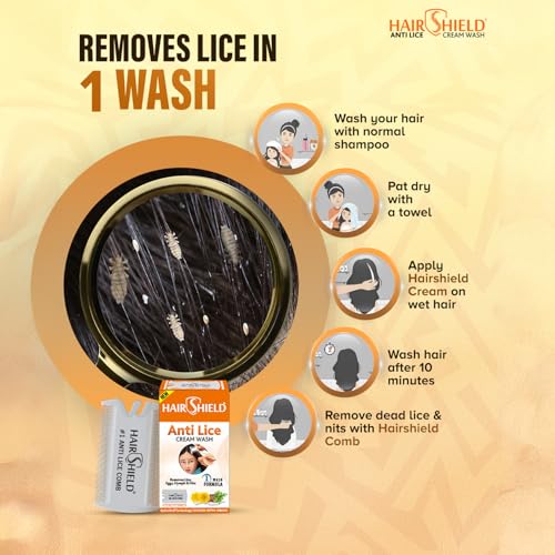 Hairshield Anti Lice Cream Wash (New Pack of 30ml) | Each Pack with New Big Lice Specialist Comb | Made with Guldaudi, Reetha & Shikakai | Trusted…