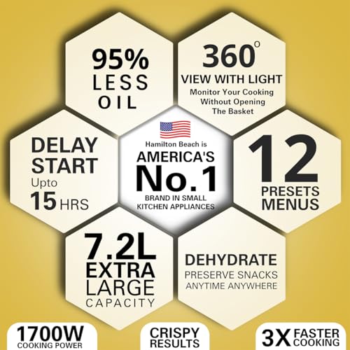 - American Innovation: Hamilton Beach, America’s No. 1 Brand in Small Kitchen Appliances, brings over 100 years of trusted innovation and quality to your home. With Hamilton Beach Air Fryer now experience powerful 1700W cooking that delivers meals 3x faster with rapid air circulation. From crispy fries to juicy chicken, enjoy perfectly cooked food in less time, every time.