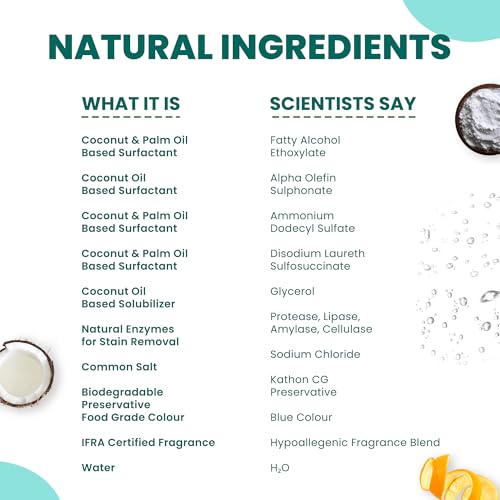 - INGREDIENTS, REIMAGINED: Made from coconut derived surfactants & glycerin, citrus peel derived enzymes.