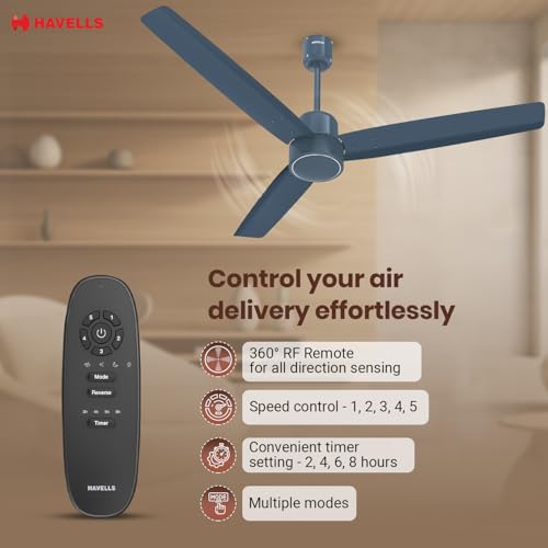 - ADVANCE REMOTE CONTROL : The Havells Fab BLDC features a Smart RF Remote for effortless control. Easily adjust speed, activate any of the 4 modes including Boost, Mop, Sleep, and Breeze, set timers, or power on and off with a single click. The remote works instantly without pairing for seamless operation anywhere in the room.