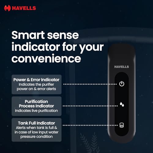 - E) REVITALIZER CARTRIDGE: It realigns the water molecules and makes it biologically active. It improves the hydration and mineral absorption in body. F) TDS REMOVAL OF UP TO 2000 mg/L (ppm): Havells Water Purifiers work effectively in TDS of 2000 mg/L (ppm) and deliver pure and healthy water that taste good.