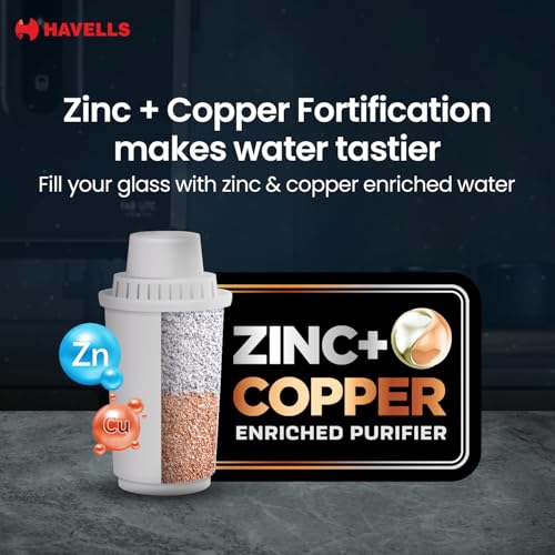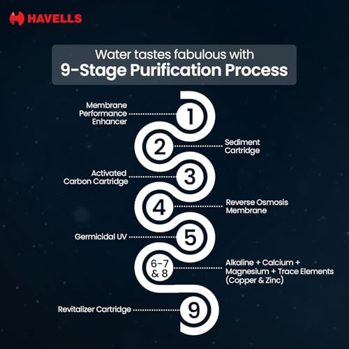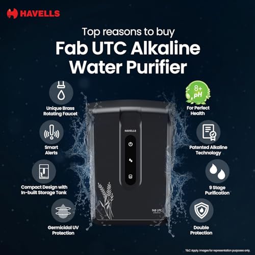 Havells FAB UTC Alkaline Water Purifier (Black), RO+UV+Alkaline, Copper+Zinc+Magnesium, 8 Stage Purification, 7Litre, Suitable for Borewell,Tanker…
