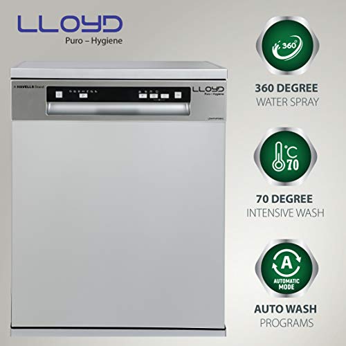 Havells-Lloyd Puro Hygiene (LDWF14PSB1IC, 14 Place Settings, 99% Germs Free with Sparkle Clean Technology, Auto Clean,Infinity Drawer, Super…