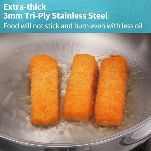 - Extra-thick 3mm Tri-Ply Stainless Steel – Food will not stick and burn even with less oil