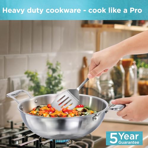 good Hawkins Pro 5 Litre Deep-Fry Pan, Triply Stainless Steel Kadhai with Stainless Steel Handle