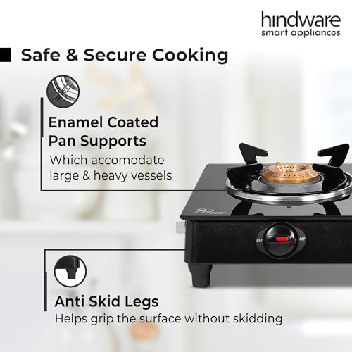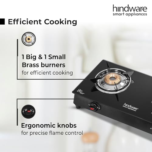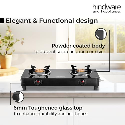 Hindware Smart Appliances Brio 2B Toughened Glass-Top | 2 Brass Burner LPG Gas Stove | Manual Ignition | Black | Spill Proof | Ergonomic Knobs |…
