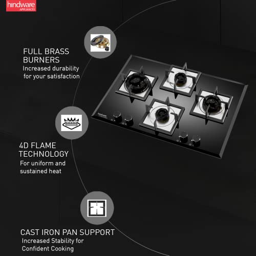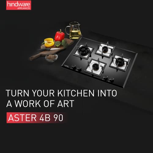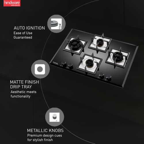 Hindware Smart Appliances KA Hob Aster | Kitchen Hob | 4D Flame Technology | Auto Ignition | Metallic Knobs | Matt Finish Drip Tray | Cast Iron Pan…