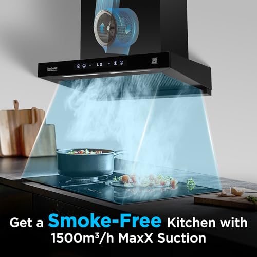 Hindware Smart Appliances Regina BLDC 90cm | 1500 CMH | Filterless | Autoclean | T-shape | Motion Sensor, Touch Control | Wall Mounted Chimney with…