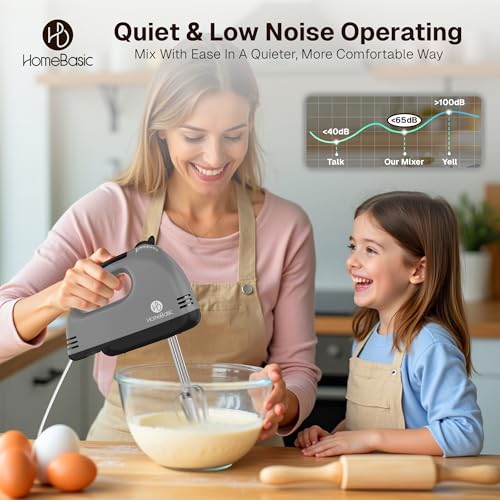 - ⚙️Powerful 260W Motor with 7-Speed Control for Precision Mixing : Experience the ease of baking with the HOME BASIC Hand Mixer powered by a durable 260-watt motor and 7 adjustable speed settings, including a turbo boost. Whether you’re whipping cream, mixing batter, or kneading dough, this electric hand beater for cake delivers consistent results every time.