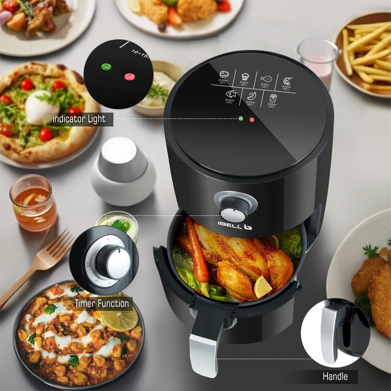 iBELL AEROFRY320 Air Fryer,1300W, 7 Preset Menu, Multiple Cooking Options, Dishwasher Safe, Non-stick Coating, Compact Design (Black)