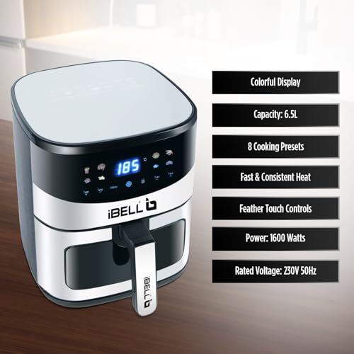 iBELL AF650MN 6.5L Air Fryer – 1600W, 8 Cooking Presets, Smart Rapid Air Technology, Detachable Basket, Timer Function, Auto Shut-Off and…