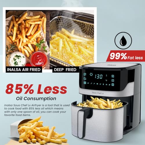 INALSA Air Fryer for Home 6.5L Capacity-1600 W with Digital Control and 8 Preset control|Quick Heat Circulation Variable Temp. Control,…
