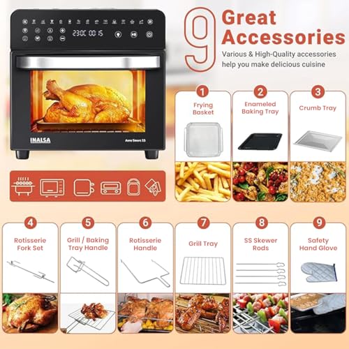 INALSA Air Fryer for Home,15 L Capacity, 1700 W, Rotisserie Convection Oven,Air Fryer Oven, 16 Preset Menu, Digital Display and Touch Control,…