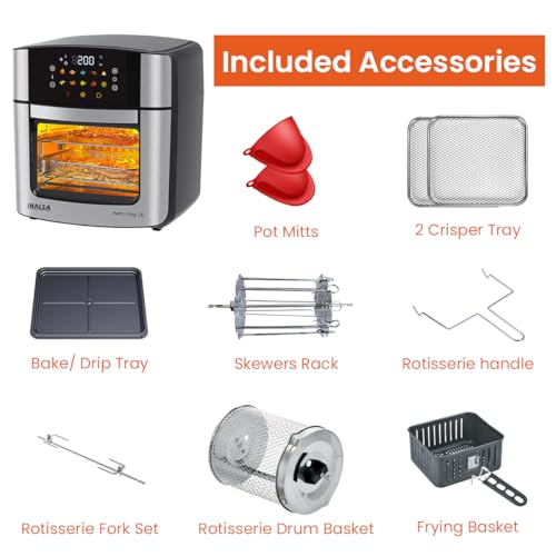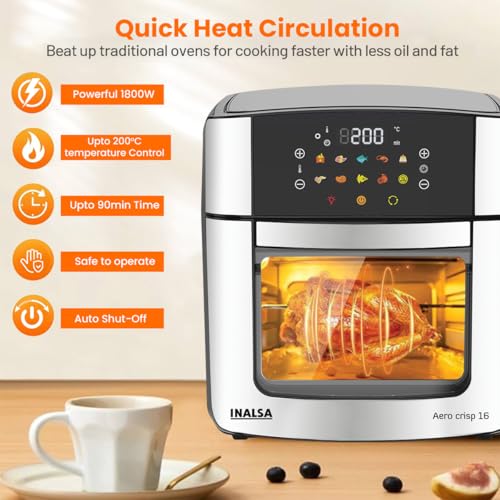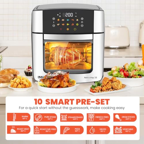 INALSA Air Fryer Oven|16L, 1800W|Stainless Steel Body12-in-1 Functions,Fry,Bake,Grill,Dehydrate,Roast& Reheat|10 Preset|Rotisserie &…