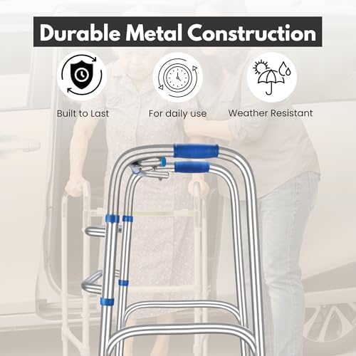 - Tool-free Installation & Foldable Design: This portable folding adult walker is convenient to use without installation. With one-click folding and compact design, this folding walker can be easily stored in the trunk of a car or in the corner of a room.