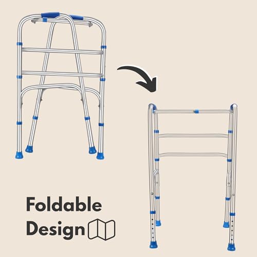 AmbiTech MS Height Adjustable & Double Bar Folding Walker for Adults, Senior Citizens and Patients (Made In India)