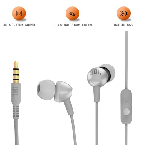 JBL C200SI, Premium in Ear Wired Earphones with Mic, Signature Sound, One Button Multi-Function Remote, Premium Metallic Finish, Angled Earbuds for…