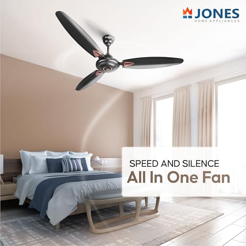 Jones Breeze 1200 mm/48 inch Ultra High Speed 3 Blade Anti-Dust Decorative Star Rated Ceiling Fan (Smoked Brown, Pack of 1)