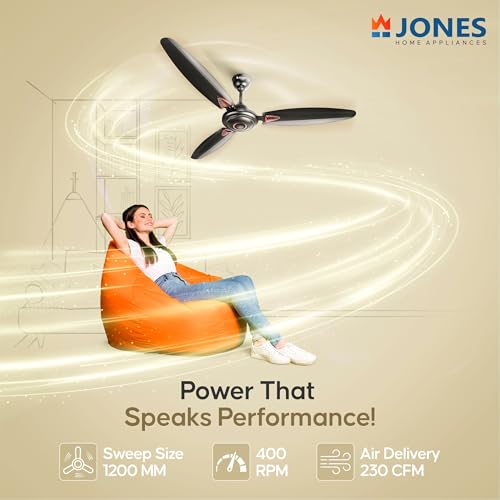 Be the first to review “Jones Breeze 1200 mm/48 inch Ultra High Speed 3 Blade Anti-Dust Decorative Star Rated Ceiling Fan (Smoked Brown, Pack of 1)” Cancel reply