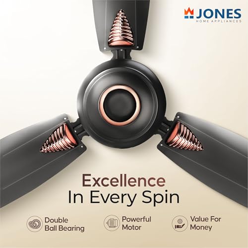 - Super Energy Efficient Motor : Elegant Design Comprises the energy efficient technology from Jones. Motor comes with ZZ High Carbon Steel Double ball bearing set, Gloss Finish with superb performance.