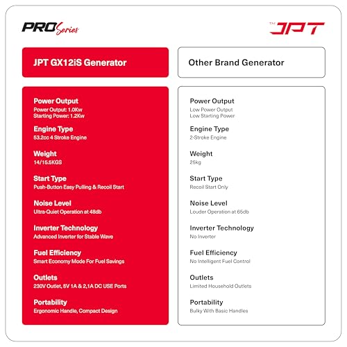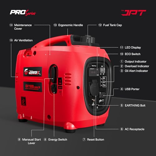 JPT Proseires Genworx 1000W/1.0KW Small and compact Manual Start Inverter Petrol Generator Lightweight, With Advanced Frequency Control, Ideal for…