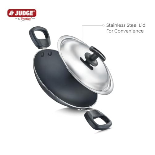 Judge by Prestige Everyday Deep Appachatty with Lid 0.8 L Capacity 20 Cm Diameter (Aluminium|Non-Stick, Black)
