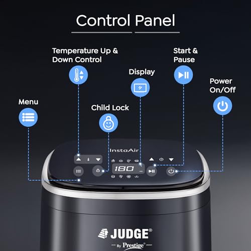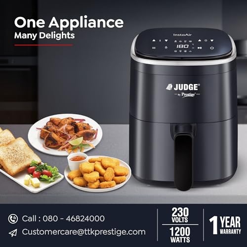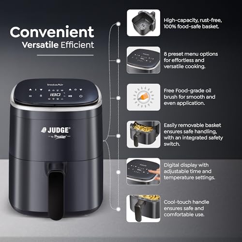Judge by Prestige InstaAir Digital Air Fryer| 80% less Oil Consumption| 4.0L Capacity| 1200 Watts| Air Fry, Grill, Roast, Bake | Digital Display…