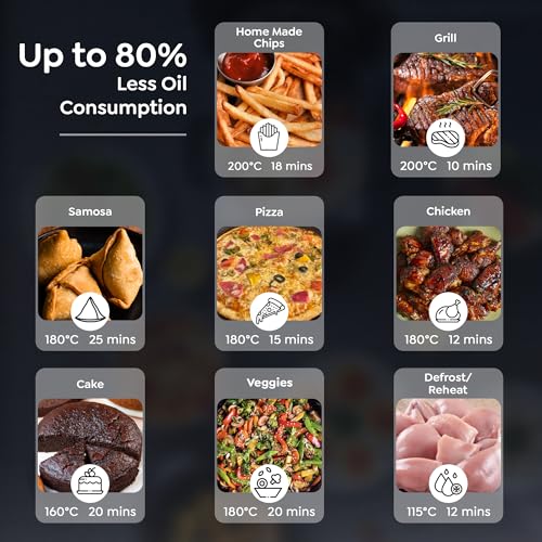 - 8 Preset Cooking Modes: Enjoy effortless air frying, grilling, roasting, and baking with 8 pre-programmed menu options.