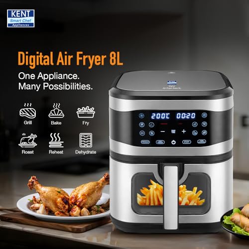 Last updated on September 8, 2025 5:42 pmnjoy delicious, crispy meals with up to 80% less oil! The KENT Digital Air Fryer features an 8L capacity, 1700W power, and a convenient glass window to check on your food.