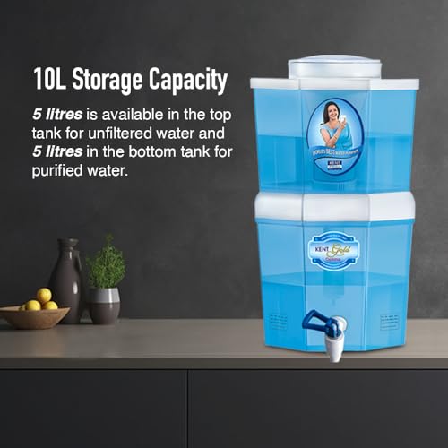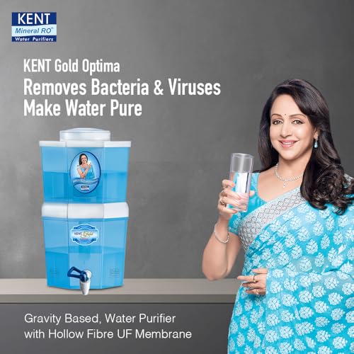 - KENT Gold Optima Gravity Water Purifier (11016) | UF Technology Based | Non-Electric & Chemical Free | Counter Top | 10L Storage | White