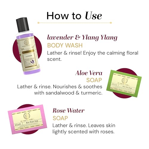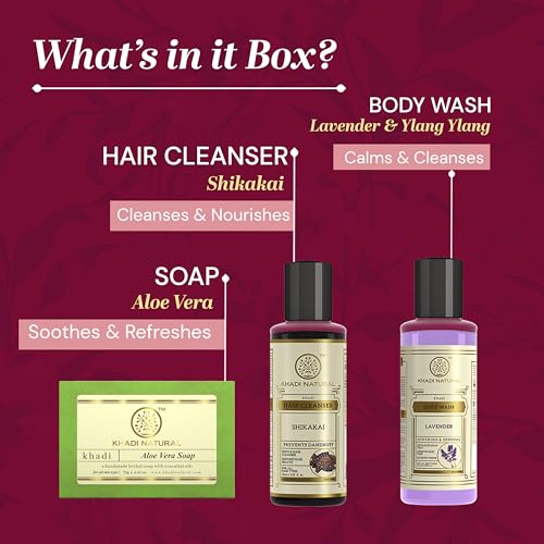 - Khadi Natural Gift Box with Rose Water Soap, Aloe Vera Soap, Shikakai Cleanser, Green Tea & Aloe Vera Conditioner, Lavender & Ylang Ylang Body Wash & Rose & Honey Moisturizer | All Skin & Hair Types | Set of 6