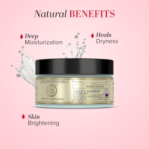 - Khadi pure; Milk & saffron hand cream with sheabutter