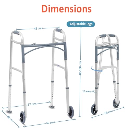 - PREMIUM: Imported walker with 5″ Castor featuring a width of 18 inches hand grip and 22inches back legs and has a overall width of 24 inches and depth (opened at base) of 19 inches and also has a maximum weight limit of 100 Kg.