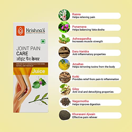 - Krishna’s Joint Pain Care Juice is an ayurvedic formulation very effective in reducing joint pains, bone pains and muscle pains.