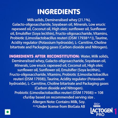 - SPRAY-DRIED FORMULA: LACTOGEN Pro 1 Baby Milk Powder is a spray-dried formula with probiotic for infants from birth when they are not breastfed up to 6 months
