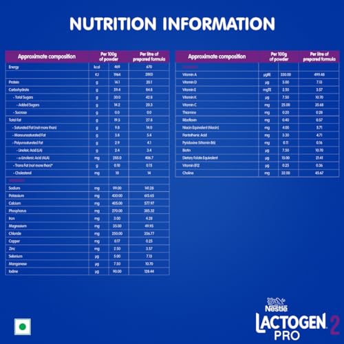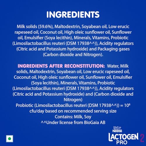 - VITAMINS & MINERALS: Nestlé LACTOGEN Pro 2 Baby Milk Powder contains vitamins such as Vitamin A, C, and D as well as minerals like iron and calcium