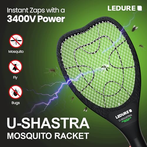 Ledure UShastra Mosquito Racket Bat | Rechargeable Electric Fly Swatter | Mosquito Killer Racquet with 6 Months Warranty | Shock Proof Racket