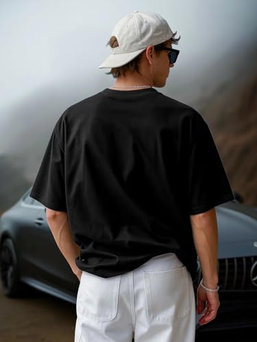 LEOTUDE Half Sleeve Oversized Cottonblend Round Neck Printed Men’s T-Shirt (Color Black)
