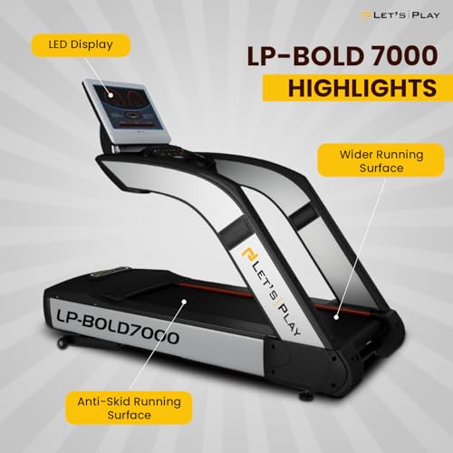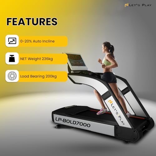 Let’s Play LP Bold 7000 Commercial Treadmil for Gym I 8 HP Peak AC Motor with Japenese Technology 20-Level Auto Incline I Max User Weight 200 kg