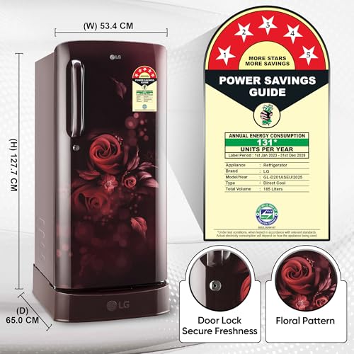 LG 185 L 5 Star Inverter Direct-Cool Single Door Refrigerator (GL-D201ASEU, Scarlet Euphoria, Base stand with drawer)