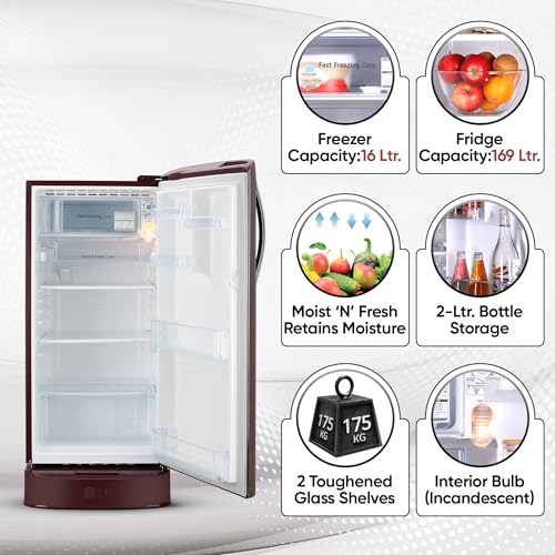 - Capacity: 185 Liters: Suitable for Suitable for families with 2 to 3 members / Bachelors / Couples | Freezer Capacity – 16 L; Fridge Capacity (Fresh food capacity) – 169 L
