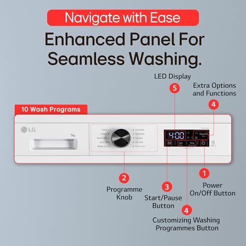 - LG Fully-Automatic Front Load Washing Machine with Hygiene Steam/ Inverter Direct Drive Technology: Best Wash Quality, Energy and Water efficient