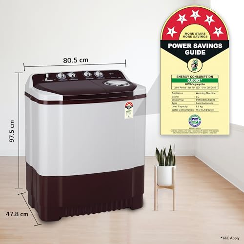 LG 8.5 kg 5 Star Semi-Automatic Top Load Washing Machine (P8530SRAZ, Burgundy, Roller Jet Pulsator)