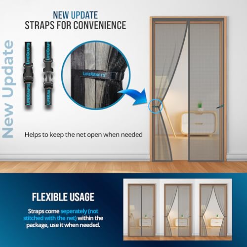 LifeKrafts Polyester Magnetic Mosquito Net for Door | Mosquito Curtain for All Door Types & Sizes | Auto-Closing Insect Screen to Keep Mosquito Out…