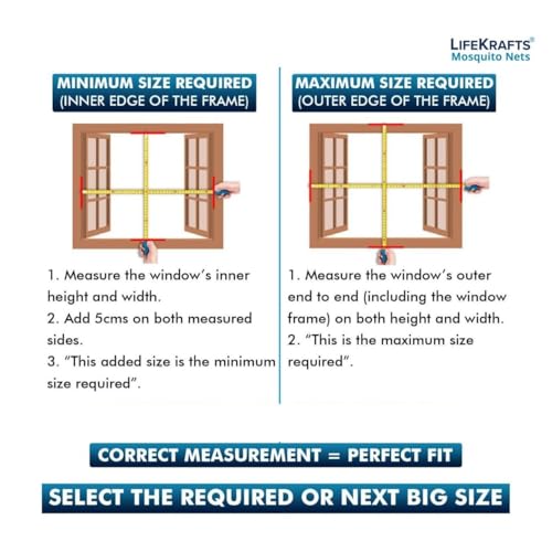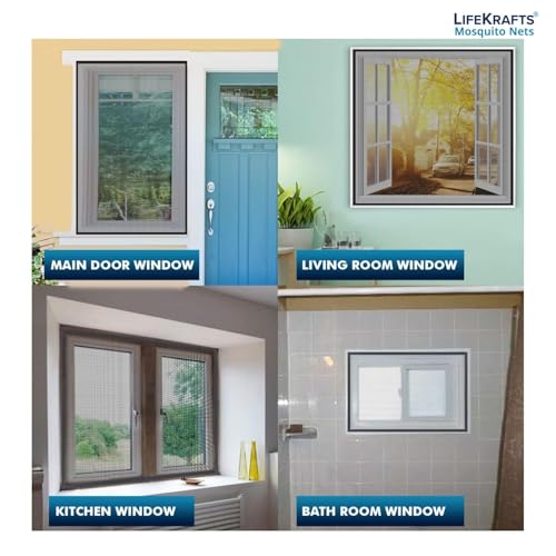Lifekrafts Standard Size Window Mosquito Net (Size-90x120cms/36×47 Inches/2.95×3.94 Feet, Color-Grey) 120 GSM Stitched Fiberglass Net with Strong…