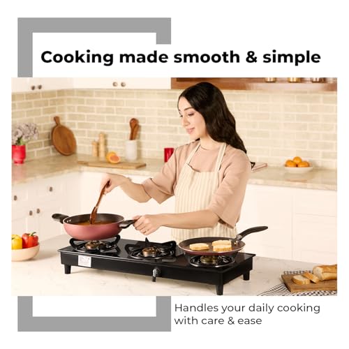 - Gas Burners: Equipped with 3 high-efficiency burners, this Lifelong gas stove provides reliable and efficient cooking performance.