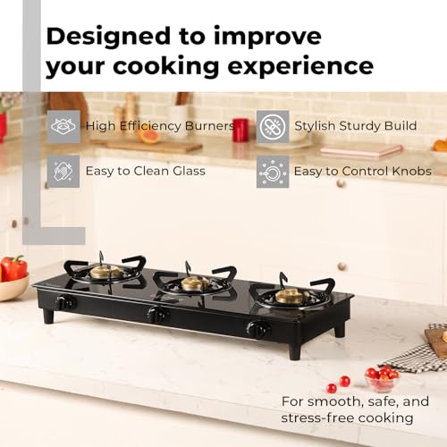 - User-Friendly Operation: Lifelong Manual Ignition Glass Top Gas Stove 3 Burner comes with smoothly operated knobs on the right side, anti-slip legs, and heavy-duty pan support for ease of use.