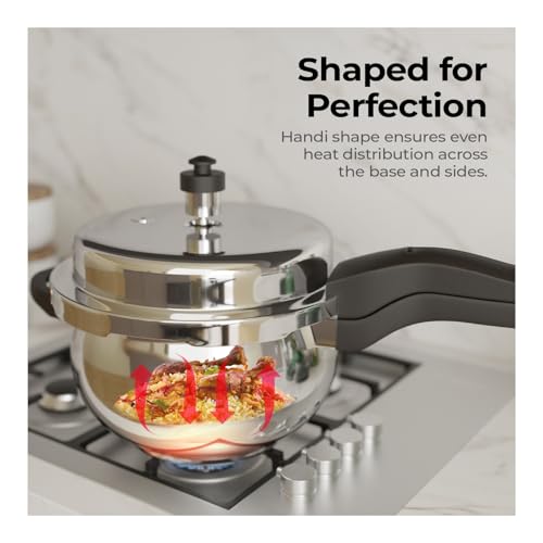 - Versatile Cooking – 5L stainless steel pressure cooker designed for hassle-free cooking on gas and induction stoves, ensuring faster and even heating for all your favourite dishes.