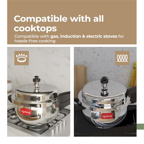 Lifelong Stainless Steel Curve Pressure Cooker 5Liters | Induction & Gas Stove Compatible with Outer Lid, ISI Certified & Lock System | Safe &…