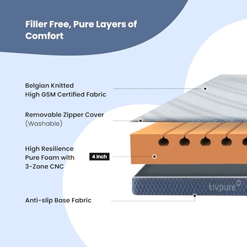 Livpure Smart Lumbar HR Foam Mattress| 3D Sleeptech Zones | Advanced Support with ComfortScience Tech| High GSM Certified Zipper Fabric| Single Bed…